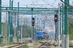 A private electric locomotive SIEMENS Smartron with number 91 52 10 80 015 - 6 , owned by private operator "PIMK Rail" at railway station Todor Kableshkov after pulling a freight train.