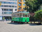 A historic tram, standing in Sofia like a museum exhibit.