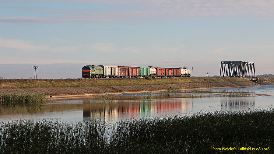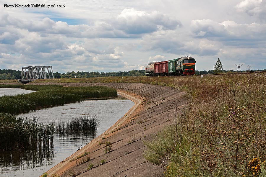 Belarusian Railways (Belaruskaja Czyhunka) M62-1351 with the freight train Siemianowka - Swislocz (Belarus) 18.08.2016, track Siemianowka - Cisowka Photo W. Kolins |