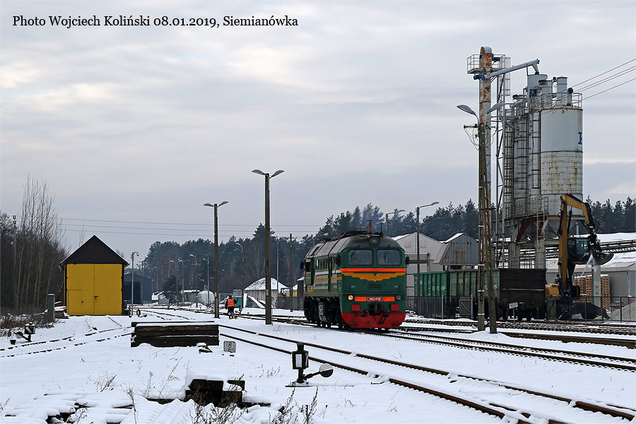 Belarusian Railways (Belaruskaja Czyhunka) M62-1530 with the freight train Siemianowka - Swislocz (Belarus) 08.01.2019, track Siemianowka - Cisowka Photo W. Kolins |