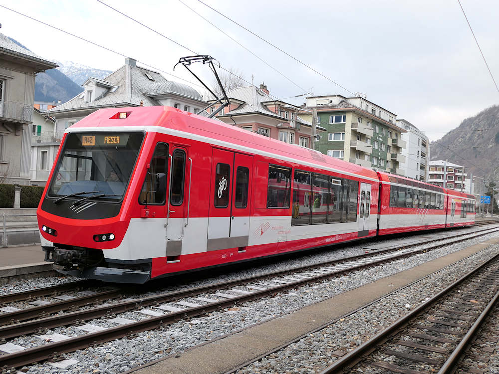 MGB - Switzerland The "Komet" trainsets are mainly used on the Zermatt-Visp-Fiesch services. Trainset ABDeh 4/8 number 2027 is seen in Brig before departure towards Fiesch. Brig, 02-01-2026 Photo by Marco van Uden |