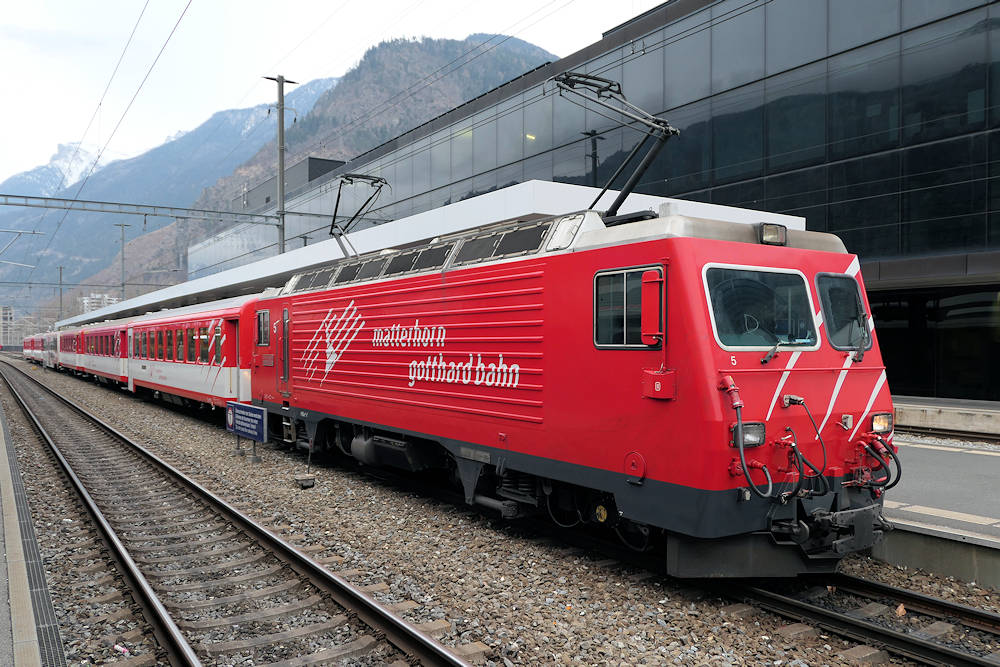 MGB - Switzerland Also the locomotives class HGe 4/4 II that were not modernised will be replaced by new "Orion" trainsets. Locomotive HGe 4/4 II nr. 5 is seen with a local train from Visp to Zermatt. Visp, 02-01-2026 Photo by Marco van Uden |