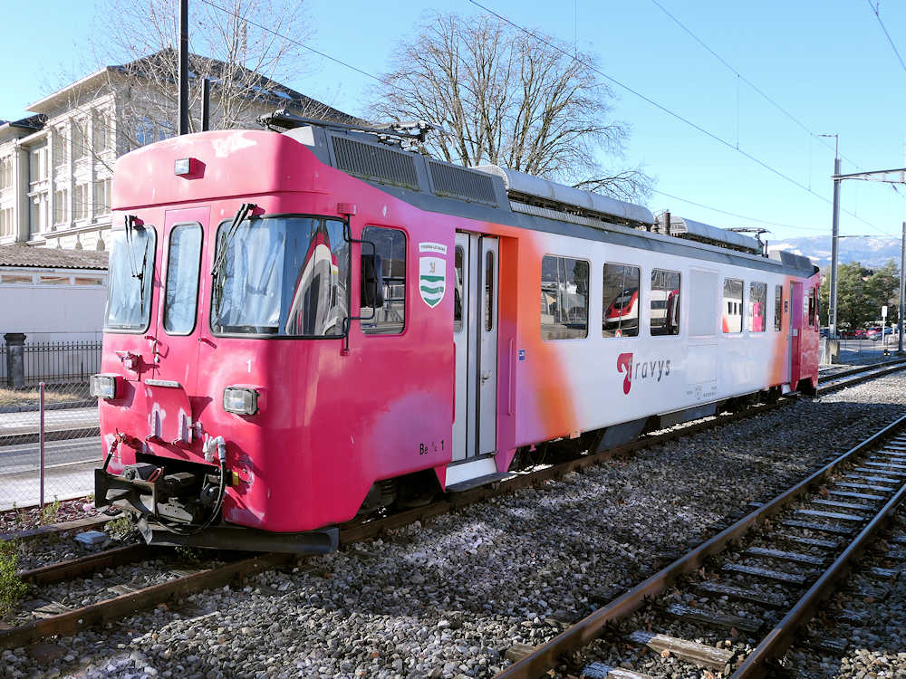 TRAVYS - Switzerland The last remaining motor car of class Be 4/4 nrs. 1-3 built in 1981 is seen stabled in Yverdon station. Yverdon, 03-01-2026 Photo by Marco van Uden |