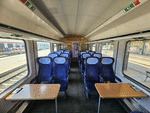 An interior in a second class Intercity passenger car of class 97, type "Bpmz" in composition of IC train with number 3683 from Sofia to Burgas via Karlovo.