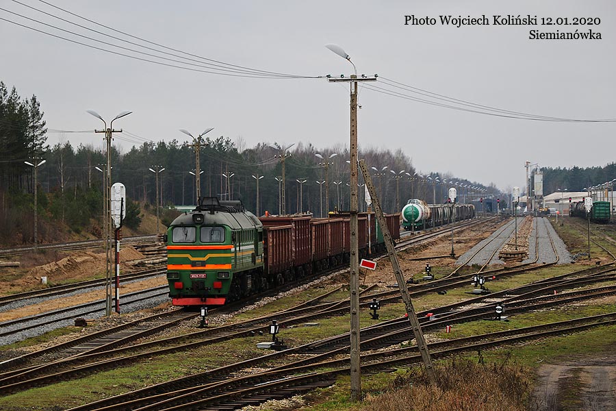 Belarusian Railways (Belaruskaja Czyhunka) M62K-1125 with the freight train Siemianowka - Swislocz (Belarus) 12.01.2020, Siemianowka Photo W. Kolins |