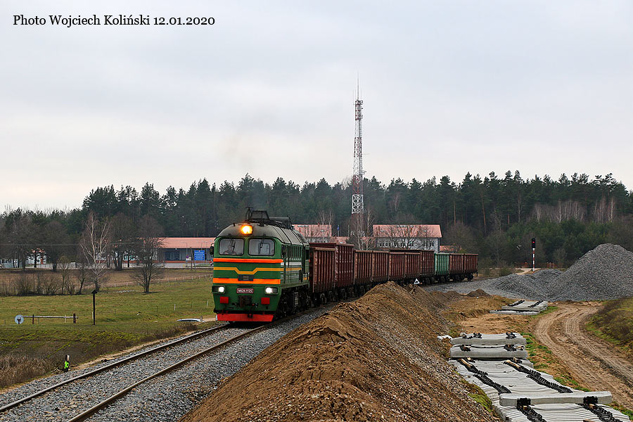 Belarusian Railways (Belaruskaja Czyhunka) M62K-1125 with the freight train Siemianowka - Swislocz (Belarus) 12.01.2020, track Siemianowka - Cisowka Photo W. Kolins |