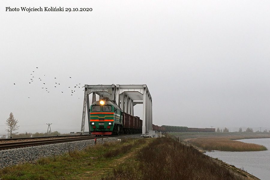 Belarusian Railways (Belaruskaja Czyhunka) M62K-9831 with the freight train Swislocz (Belarus) - Siemianowka 29.10.2020, track Cisowka - Siemianowka Photo W. Kolins |