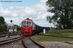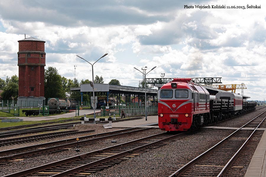Lietuvos Gelezinkeliai (LG) M62K-1150 with the working train from Mockava 11.06.2013, Sestokai Photo W. Kolins |
