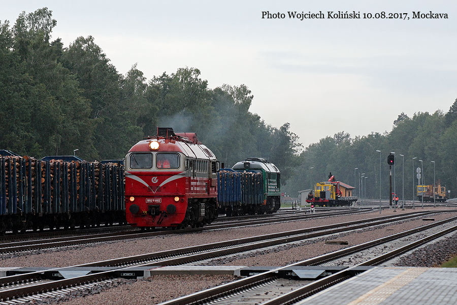 Lietuvos Gelezinkeliai (LG) M62K-1482 with the freight train from Sestokai 10.08.2017, Mockava Photo W. Kolins |