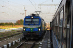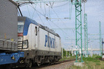 A private electric locomotive SIEMENS Vectron with number 91 52 10 81 972 - 7, owned by private operator "PIMK Rail" standing at railway station Todor Kableshkov before pulling a freight train.