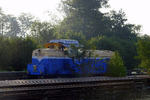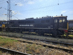 A private diesel locomotive with number 92 52 00 07 151 - 0, owned by private operator Euro Engineering at railway station Vakarel with work train.