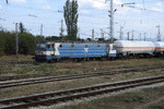A private electric locomotive Softronic Transmontana with number 91 53 0 480 091 - 4, owed by private operator "Bulmarket" at railway station Iliyantsi with freight train.