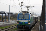 A private electric locomotive SIEMENS Smartron with number 91 52 10 80 027 - 1, owned by private operator "Bulmarket" at railway station Iskar with freight train.