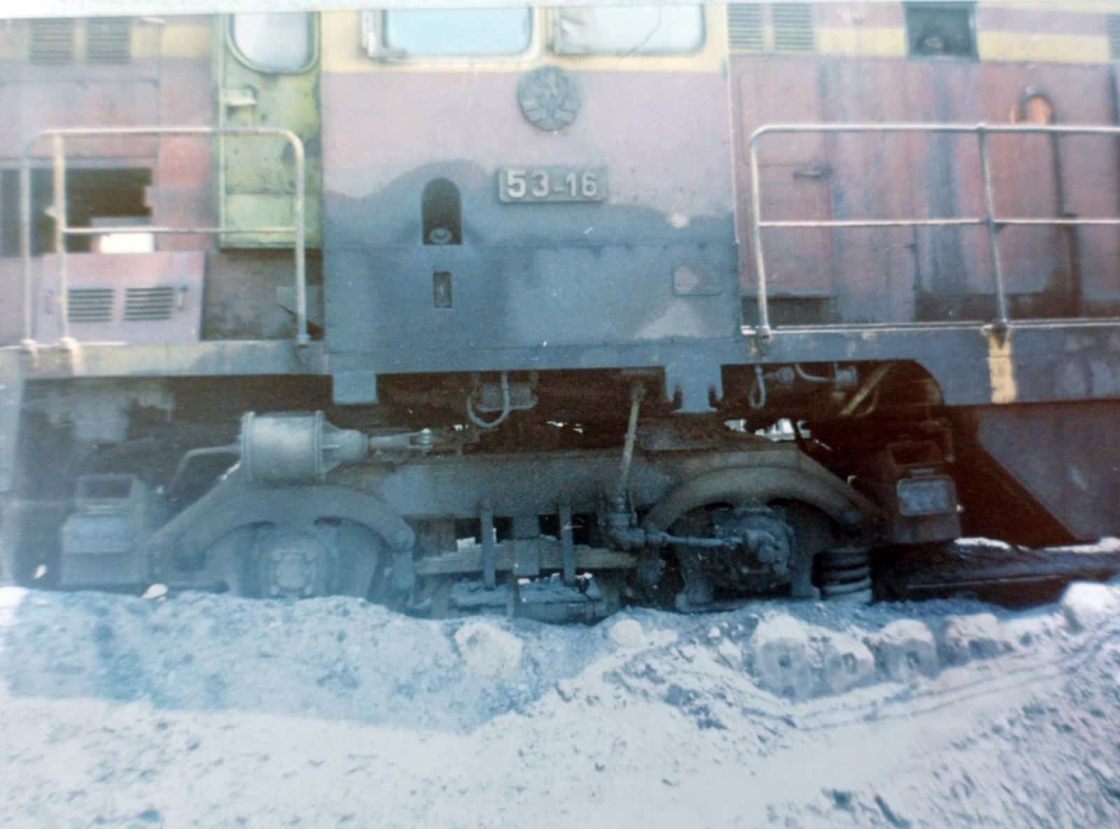 53-16 (type "TGM") near railway station Pazardjik, shunting with freight car. This class diesel locomotives is no longer exist in Bulgarian State Railways by now.