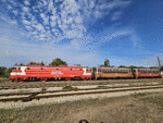 A private diesel locomotive 91 52 00 06 063 - 8 , owned by private operator TPPBD ("Termo Power Plant Bobov Dol") at railway station Samuil before pulling a freight train.