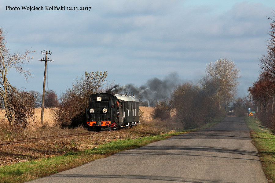 Starostwo Powiatowe w Srodzie Wielkopolskiej / Towarzystwo Przyjaciol Kolejki Sredzkiej "Bana" Px48-1756, maneuvers around the passenger train Sroda Miasto - Zaniemysl 12.11.2017, Zaniemysl Photo W. Kolins |