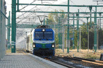 A private electric locomotive SIEMENS Smartron with number 91 52 10 80 012 - 3 , owned by private operator "PIMK Rail" at railway station Iskar with freight train.