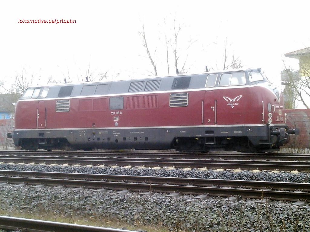 Lok 221 106-8 der Bahngesellschaft Altmark-Rail GmbH zeigte sich am 24.02.2026 nahe dem S-Bahnhof Erzhausen. Loco 221 106-8 of the Altmark-Rail GmbH showed up close by the S-Bahn station of Erzhausen (02/24/2026).