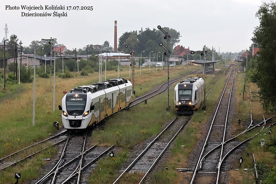 Koleje Dolnoslaskie (KD) 36WEh-015 as the passenger train Dzierzoniow Slaski - Bielawa Zachodnia and SA134-024 as the passenger train Jawor - Klodzko Miasto 17.07.2025, Dzierzoniow Slaski Photo W. Kolins |