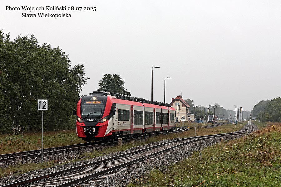 Koleje Wielkopolskie (KW) 36WEh-025 as the passenger train Wagrowiec - Wolsztyn 28.07.2025, Slawa Wielkopolska Photo W. Kolins |