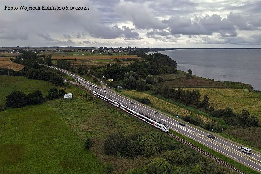 Polregio 36WEhb-005+006 as the passenger train Hel - Gdynia Glowna 06.09.2025, track Swarzewo - Puck Photo W. Kolins |