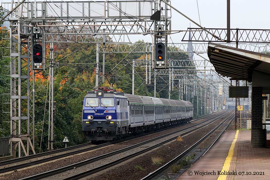 PKP Intercity EP09-007 with the passenger train "Lubomirski" Gdynia Glowna - Przemysl Glowny 07.10.2021, track Gdynia Glowna - Gdynia Orlowo Photo W. Kolins |