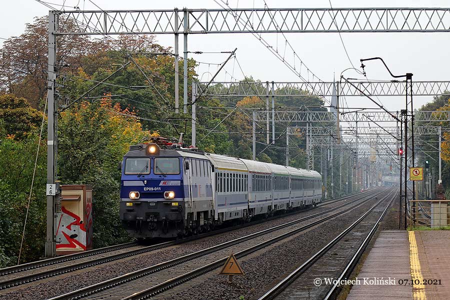 PKP Intercity EP09-011 07.10.2021, track Gdansk Wrzeszcz - Gdansk Glowny Photo W. Kolins |