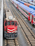 An electric locomotive E68 075 of TCDD ( Turkiye Cumhuriyeti Devlet Demiryollari / Turkish Railways ) in depot near railway station Istanbul HalkalI.