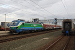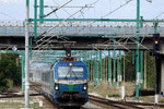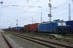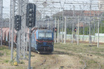 A private electric locomotive SIEMENS Smartron with number 91 52 10 80 032 - 1, owned by private operator "Bulmarket" at railway station Dimitrovgrad Central with freight train.