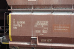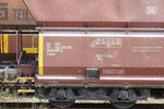 A freight car "Falns" owned by private operator "DB Cargo Bulgaria" standing at railway station Lubenovo Predavatelna in composition of freight train.