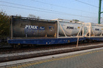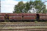 A private freight cars "Smmps", owned by private operator "PIMK Rail" standing at railway station Pazardjik in composition of freight train.