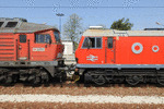 A view from 2 private locomotives, both owned by private opеrator "DB Cargo Bulgaria" standing at railway station Pazardjik, before pulling a freight train.