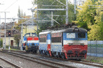 A private electric locomotive SIEMENS Smartron with number 91 52 10 80 064 - 4, owned by private operator LTE - Bulgaria crossing through railway station Pazardjik with freight train.