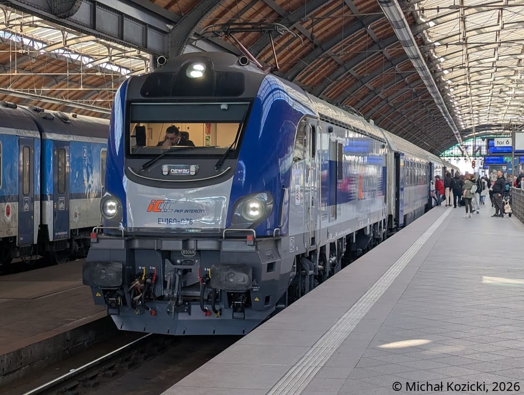 PKP IC EU160-078 makes a stop at Wroclaw Gl. on the IC "Mehoffer" service from Szczecin to Przemysl, Poland, 07.03.2026.