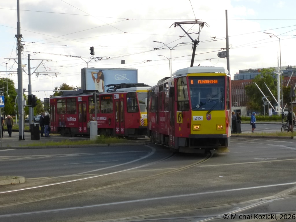 Tatra T6A2D No. 219 and 220 on route 6 at Wyszynskiego, Szczecin, Poland, 10.09.2024.