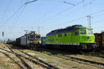 A private diesel locomotive with number 92 52 00 07 616 - 2 , owned by private operator "Euro Engineering" at railway station Iliyantsi with freight train.