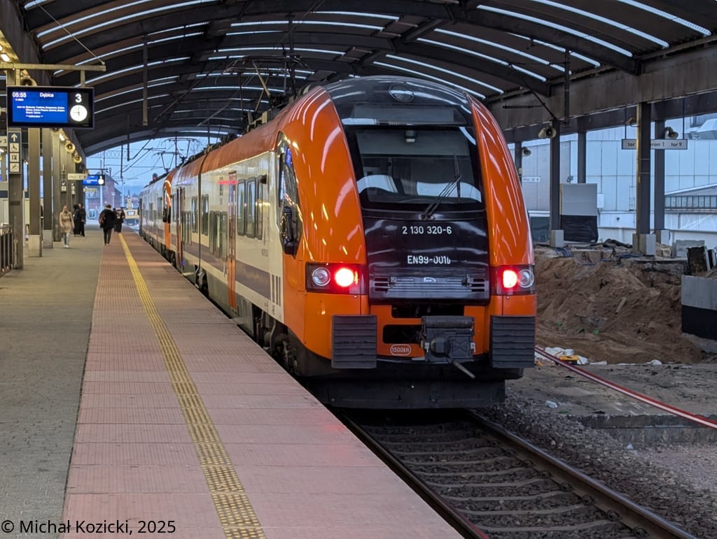 PolRegio EN99-001 and EN64-002 will depart from Katowice on a service to Debica, Poland, 24.03.2025.