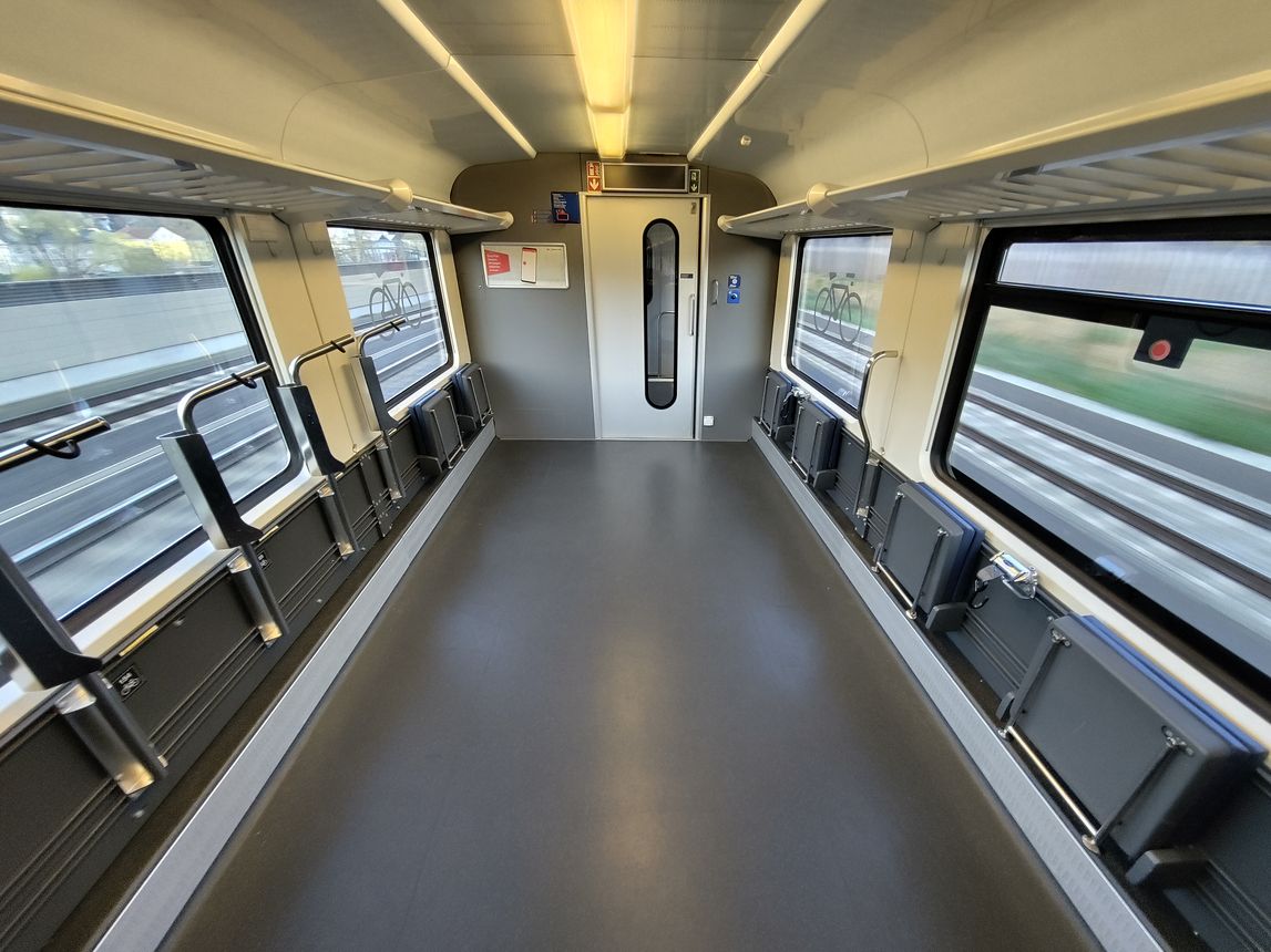 | The bicycle zone of a SBB CFF FFS Bpm 20-90 EC car in the IC 558 Wien - Graz is empty on 2026-04-11. |