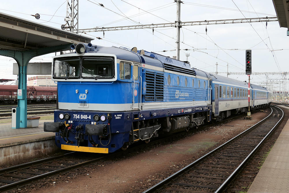 CD - Czechia Diesel locomotive 754 040 arrives with an express passenger train in Hradec Kralove. Hradec Kralove, 04-04-2026 Photo by Marco van Uden |