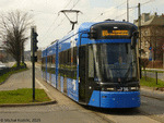Stadler Tango Lajkonik II No. HY736 on route 18 at Rondo Grunwaldzkie, Krakow, Poland, 24.03.2025.