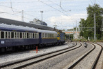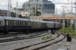 A retro Hungarian car at central railway station Plovdiv in composition of special train "Golden Eagle Danube Express" from Paris to Istanbul.