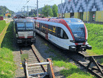 Beacon Rail - Germany Recently electrification of the Graz - Wies-Eibiswald line over part of the future Koralmbahn was brought into use. The Graz-Köflacher Bahn has hired Vectron locomotives from Beacon Rail and German double deck coaches to operate this service. Vectron locomotive X4E-602 is seen stabled at Wies-Eibiswald next to one of the diesel trainsets class 5063 still in use for the other lines. Wies(AT), 16-08-2025 Photo by Marco van Uden |
