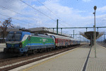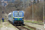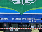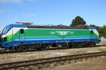 A private electric locomotive SIEMENS Smartron with number 91 52 10 80 028 - 5 owned by private operator "Bulmarket" at railway station Senovo with freght train.