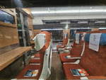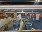 An interior in a passenger car "Caledonian Sleeper" at railway station London King`s Cross in composition of night train to Glasgow Central.