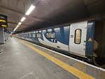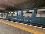 A passenger car "Caledonian Sleeper" at railway station London King`s Cross in composition of night train to Glasgow Central.