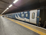 A restaurant and a longe car "Caledonian Sleeper" at railway station London King`s Cross in composition of night train to Glasgow Central.
