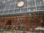 An electric locomotive of class 92 with number 92 043 at railway station London King`s Cross with night train to Glasgow Central.