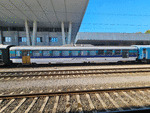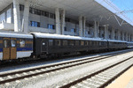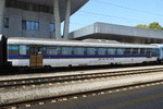 A second class passenger car of MAV (Magyar Allam Vasutak / Hungarian Railways) type "BRpee" with number 51 55 85 36 005 - 7 at central railway station Sofia in composition of an attraction train.