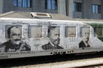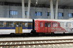 A second class passenger car of MAV (Magyar Allam Vasutak / Hungarian Railways) type "BRpee" with number 51 55 85 36 004 - 0 at central railway station Sofia in composition of an attraction train.