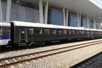 A sleeping car of MAV (Magyar Allam Vasutak / Hungarian Railways) type "WL" with number 56 55 70 29 362 - 3 at central railway station Sofia in composition of an attraction train.